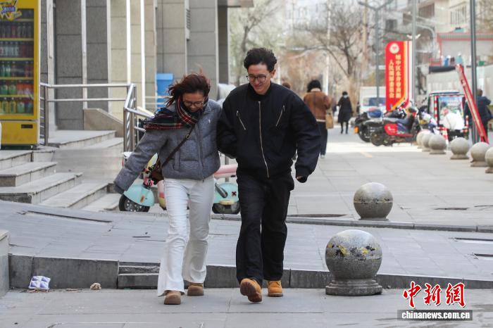 11月26日,青海西宁,市平易近迎风出止。中新社记者 马铭行 摄